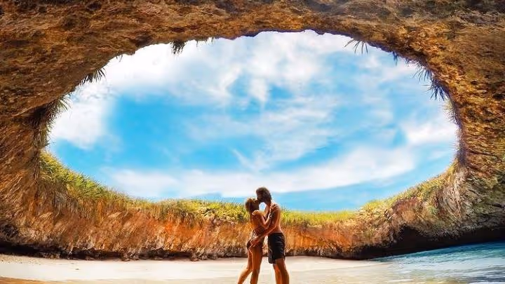 Imagine uncovering a hidden paradise in the heart of the ocean: Playa del Amor, also known as the Hidden Beach.This natural wonder, nestled within the Marietas Islands, is a crater surrounded by crystal-clear waters and white sand, accessible only by swimming through an underwater tunnel.