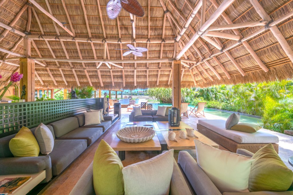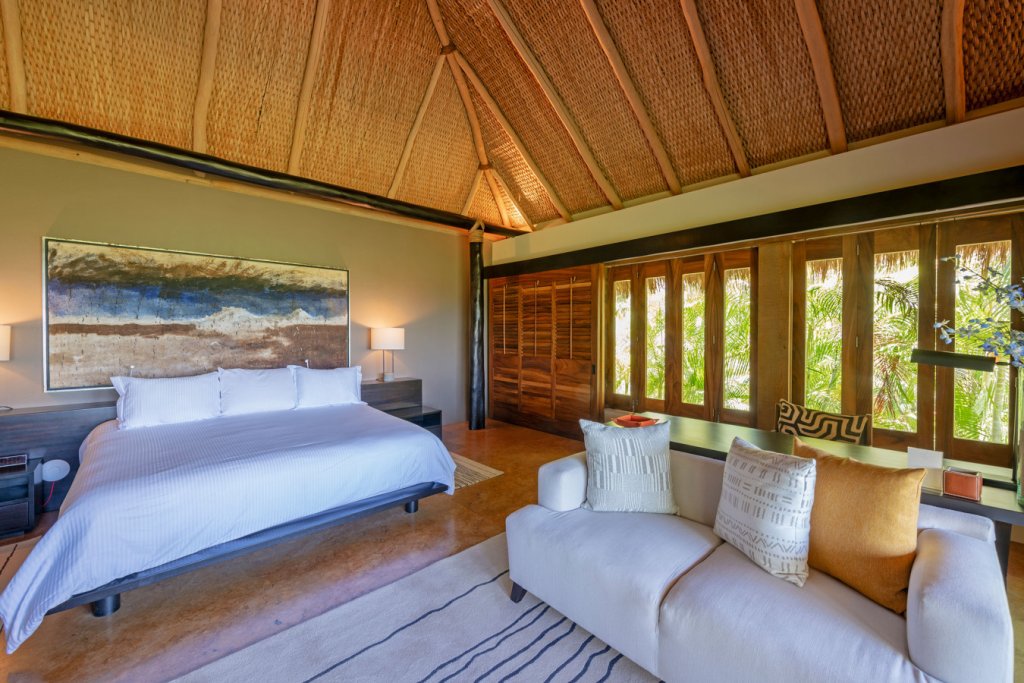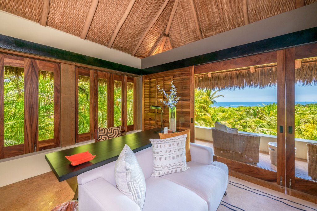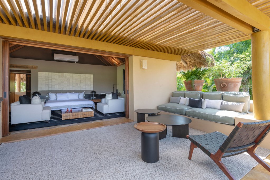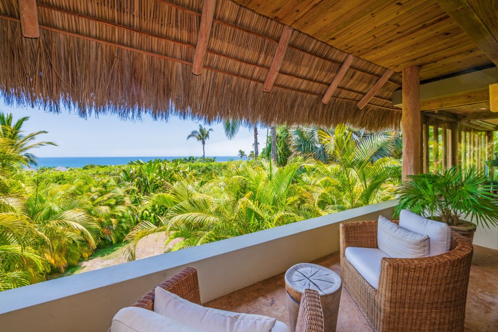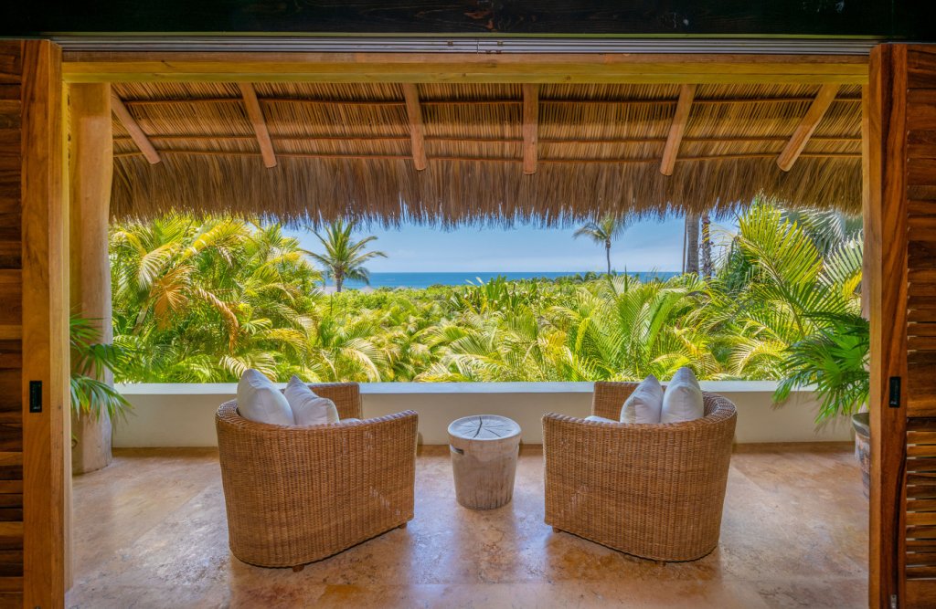 Designed by renowned architects Alfonso Lopez Baz and Javier Calleja, Villa Aire is a stunning oceanfront property located within the exclusive gated community of Punta Mita, Lagos del Mar. This 8,000 sq. ft. residence combines natural materials like wood, marble, and stone with elegant palm-thatched roofing to create a luxurious and serene escape.