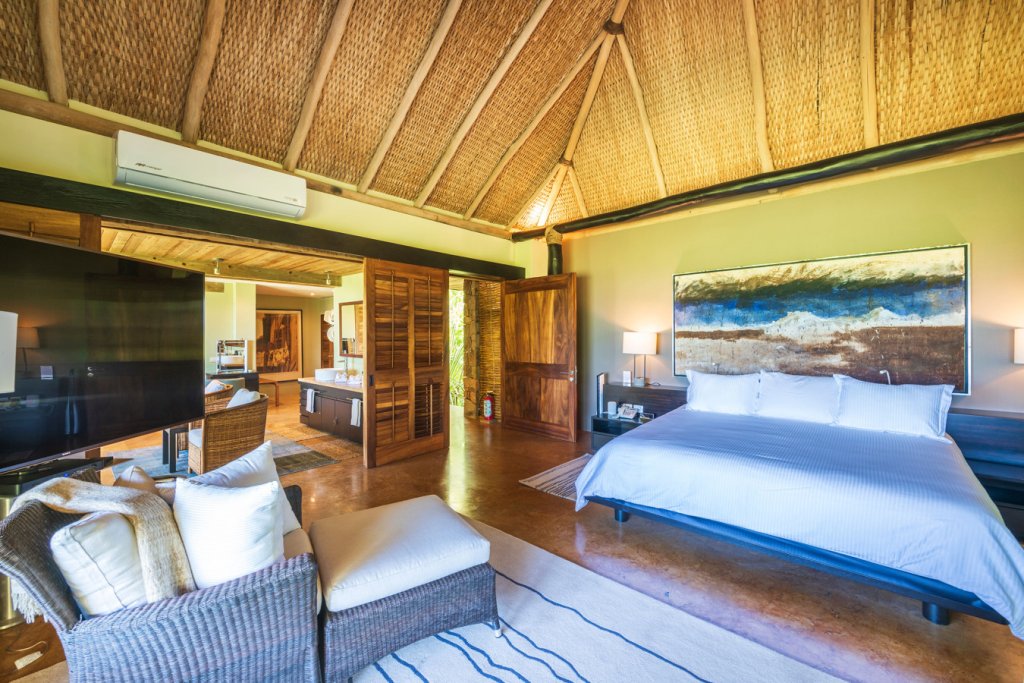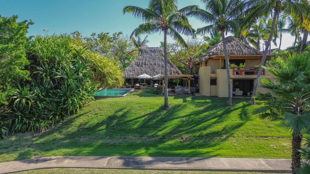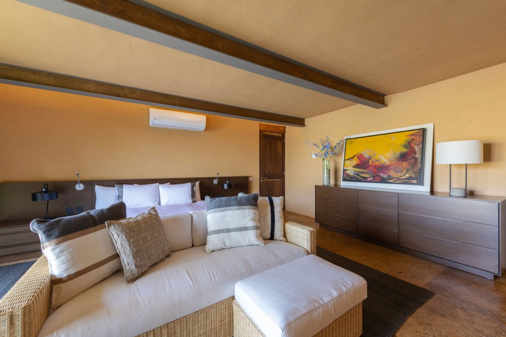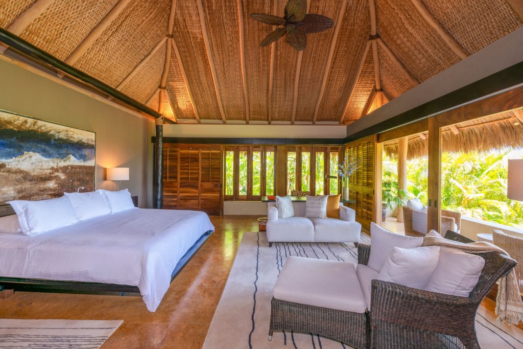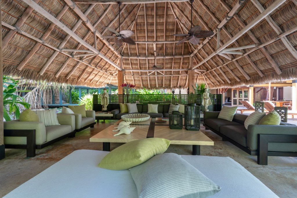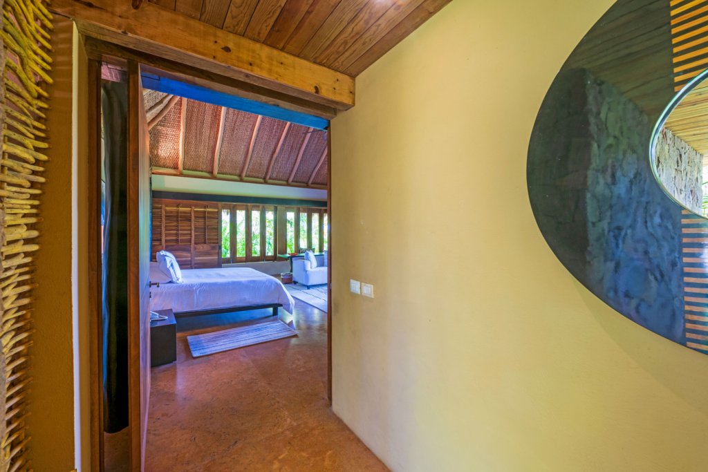 Designed by renowned architects Alfonso Lopez Baz and Javier Calleja, Villa Aire is a stunning oceanfront property located within the exclusive gated community of Punta Mita, Lagos del Mar. This 8,000 sq. ft. residence combines natural materials like wood, marble, and stone with elegant palm-thatched roofing to create a luxurious and serene escape.