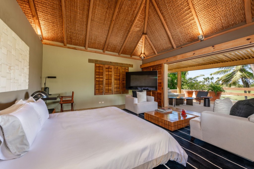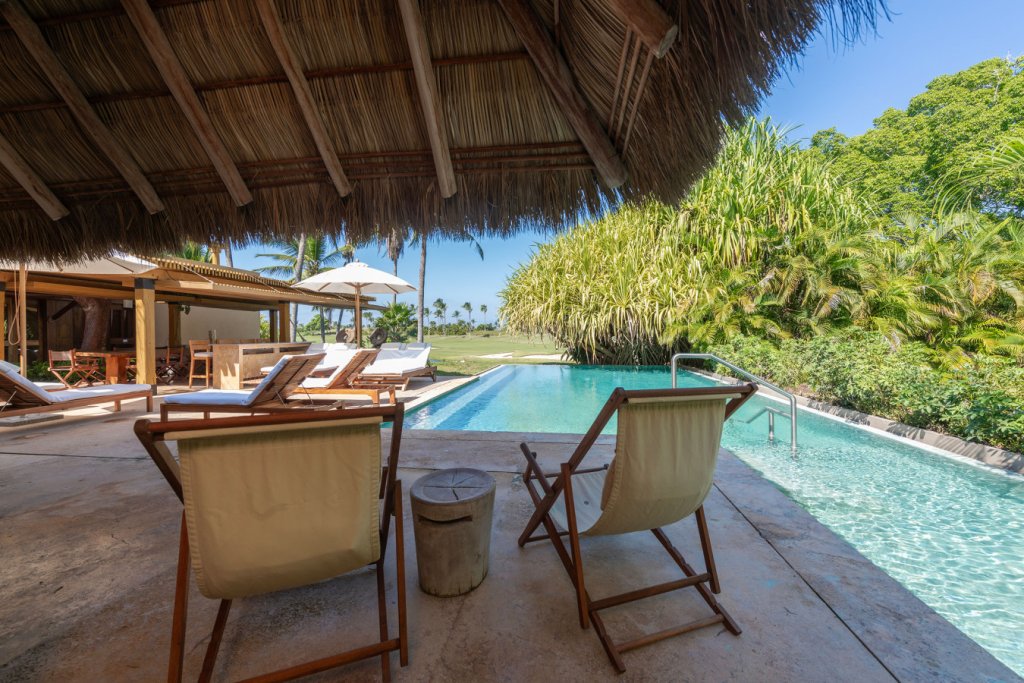 The open floor plan flows seamlessly between indoor and outdoor living spaces, making the most of the villa’s breathtaking views of the Pacific Ocean and the Jack Nicklaus Signature Golf Course.