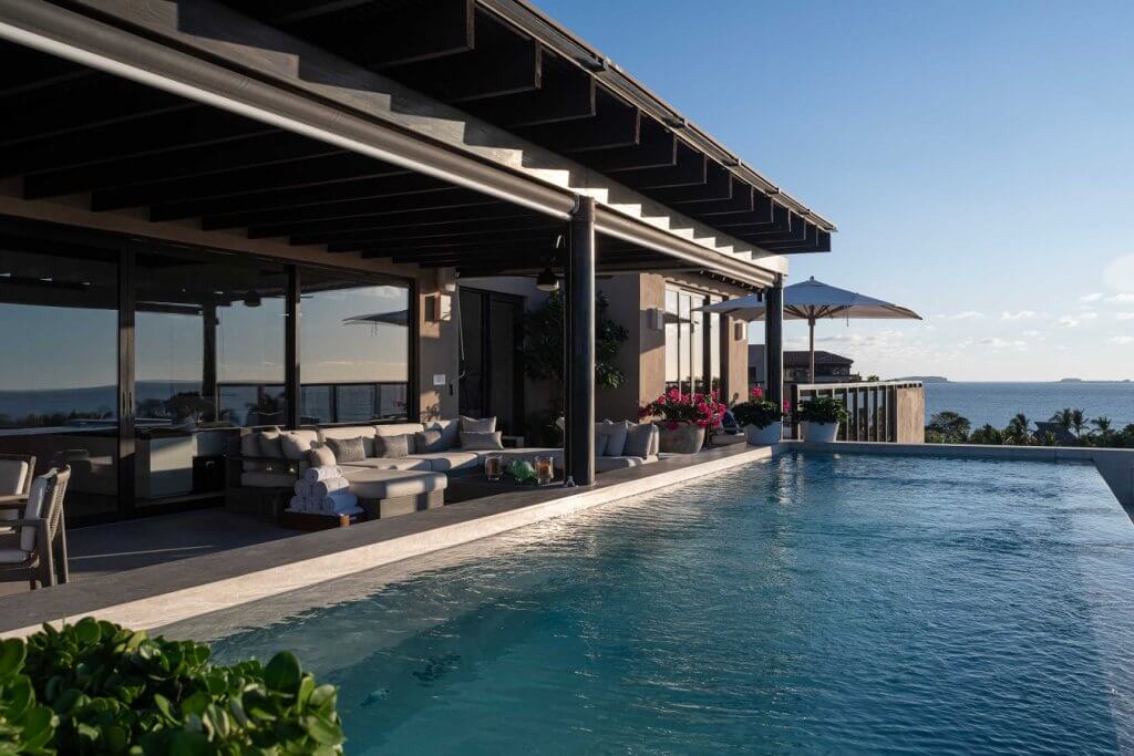 A private pool provides a serene retreat, while water sports and outdoor activities complete the experience.