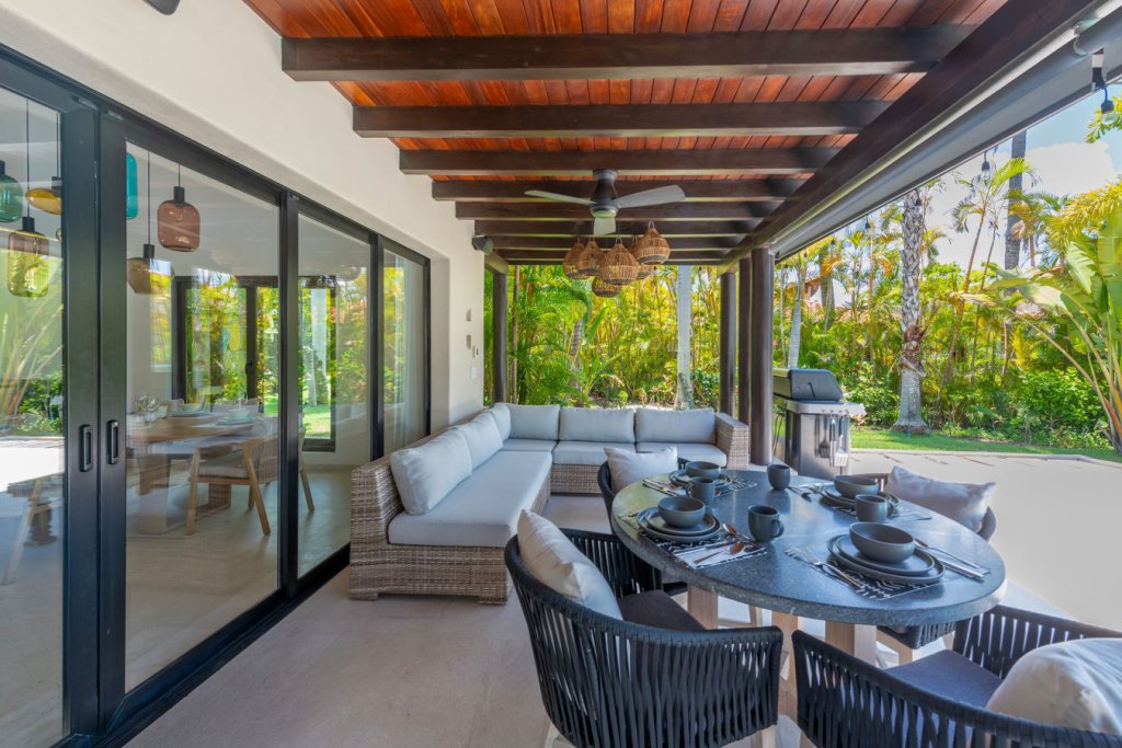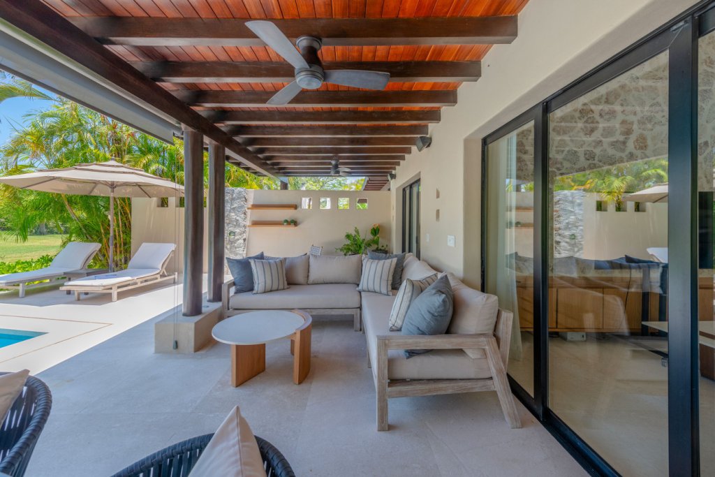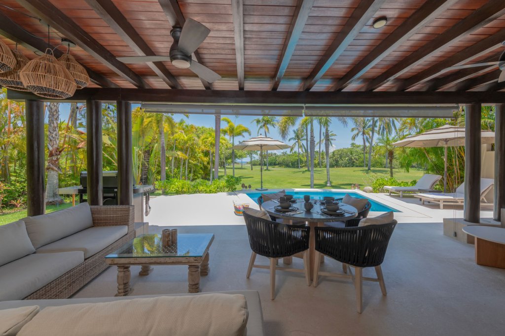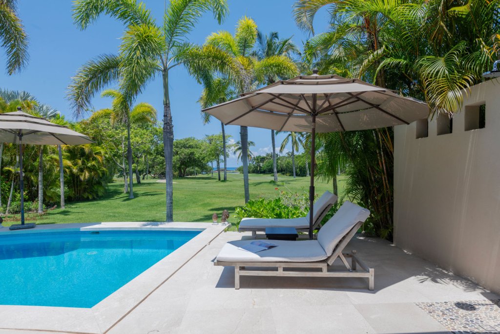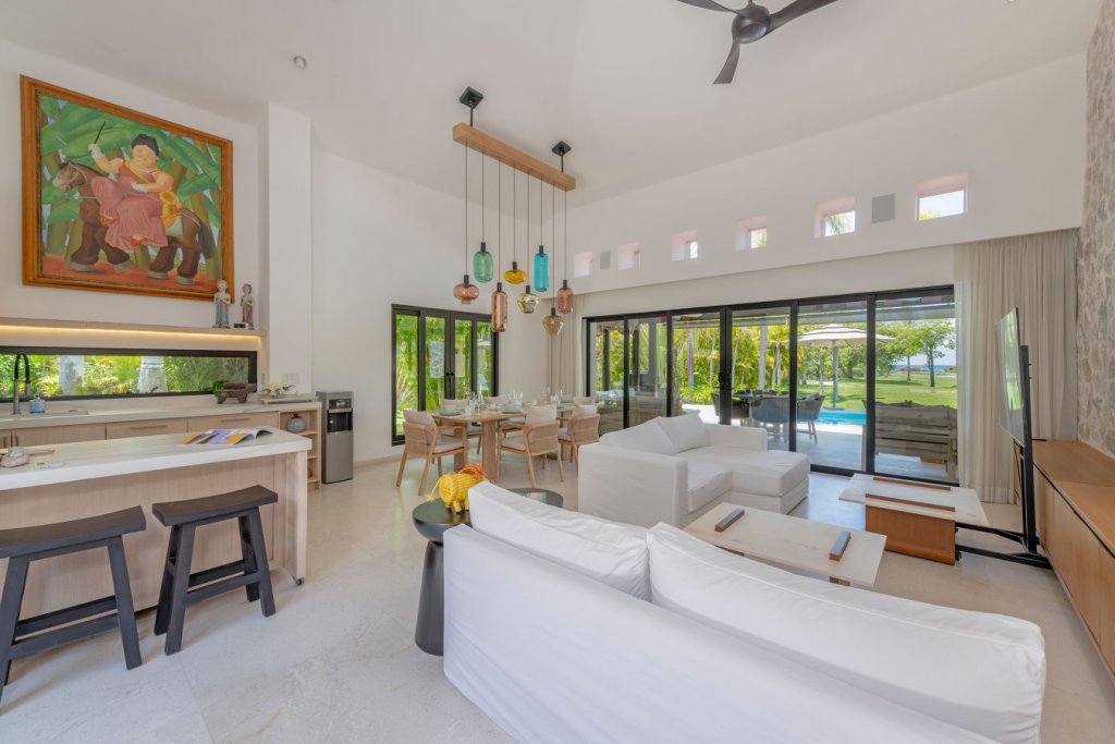 The serene outdoor spaces feature lush landscapes, expansive lawns, and tropical gardens that seamlessly blend with the property’s architecture.