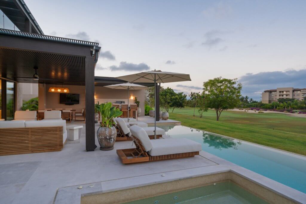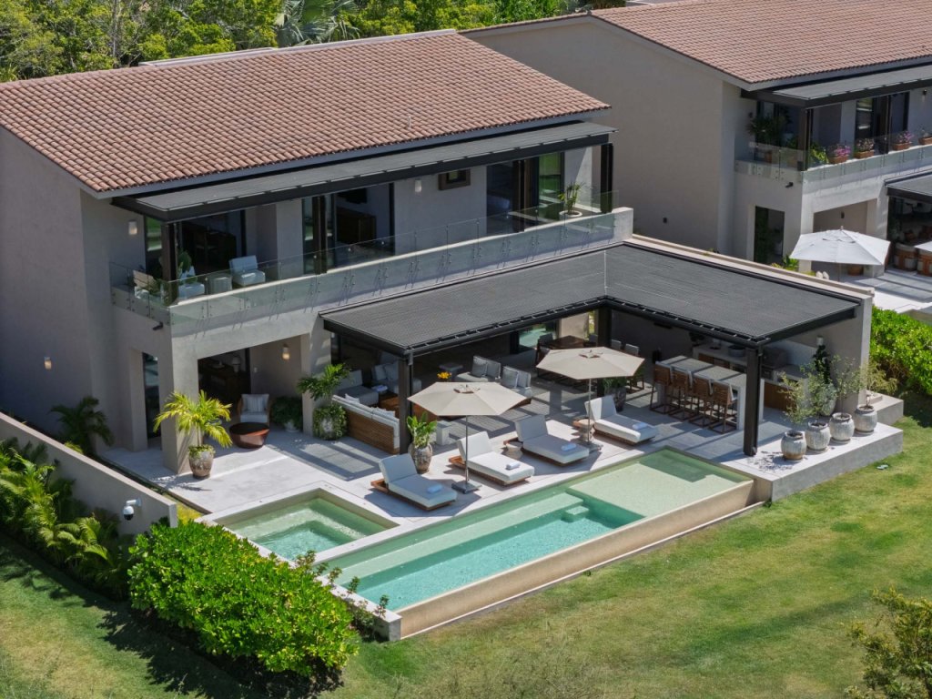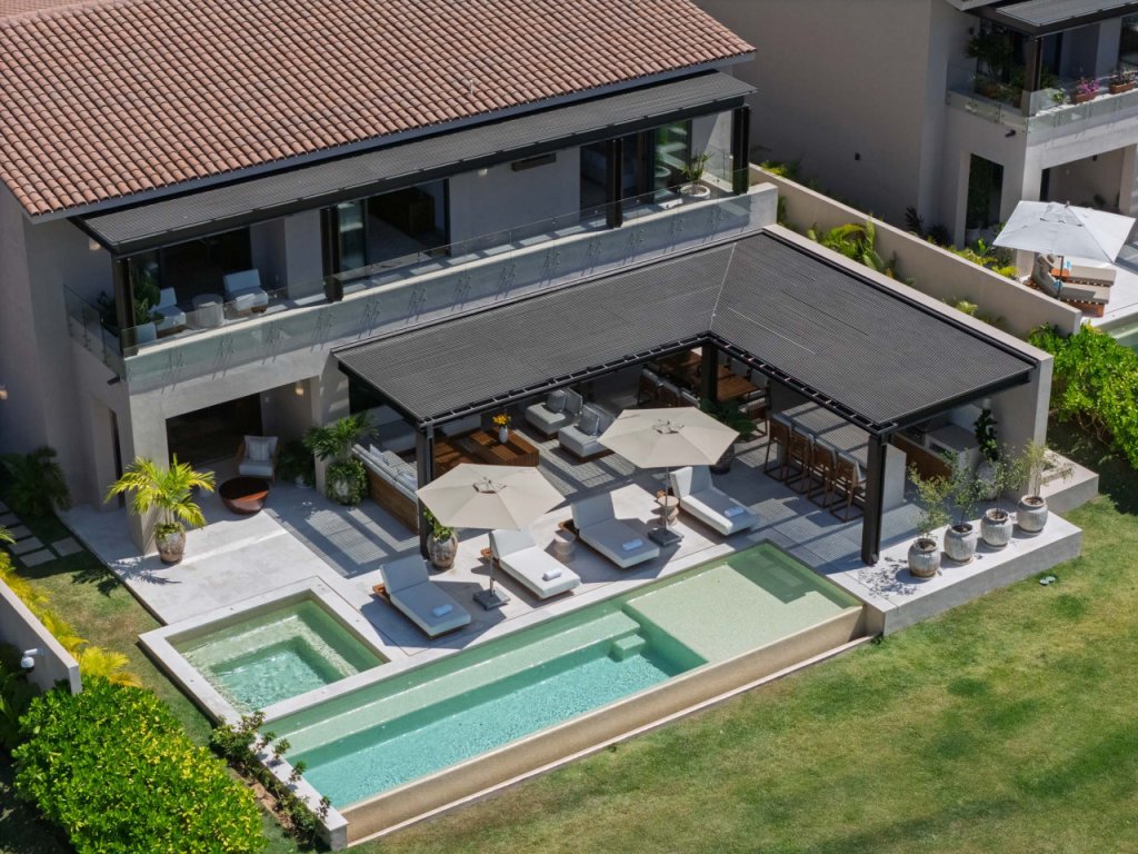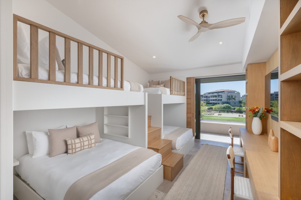 Villa Buena Vida is a luxury golf-view residence in the exclusive Porta Fortuna Golf Villas within Punta Mita. This private villa features 4 bedrooms—three with king beds and a bunk room with two queens and two twins—plus staff quarters. Enjoy a private pool and jacuzzi, outdoor dining with BBQ, and a spacious terrace overlooking the golf course. Includes a fully equipped kitchen, open living areas, and golf cart for easy access to beaches, marina, and restaurants.