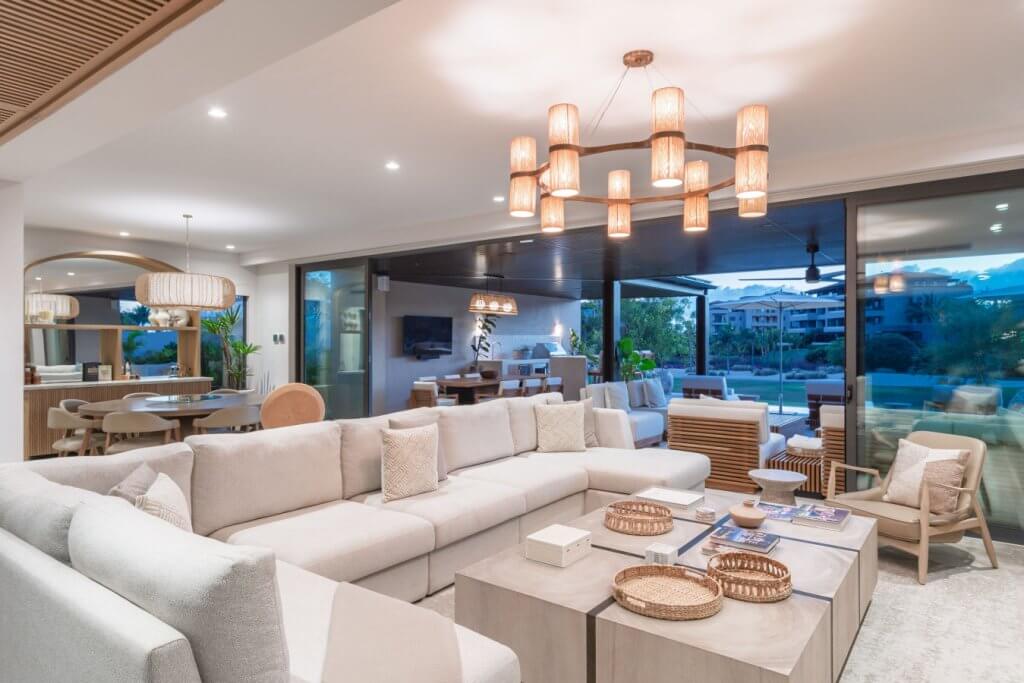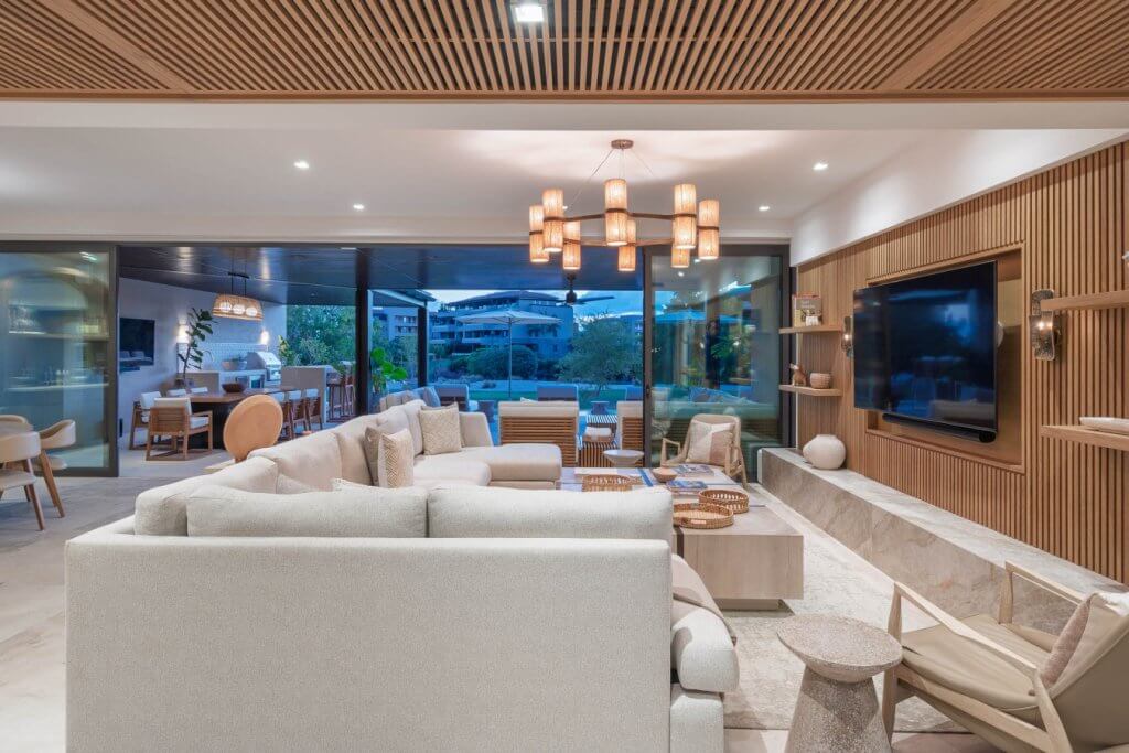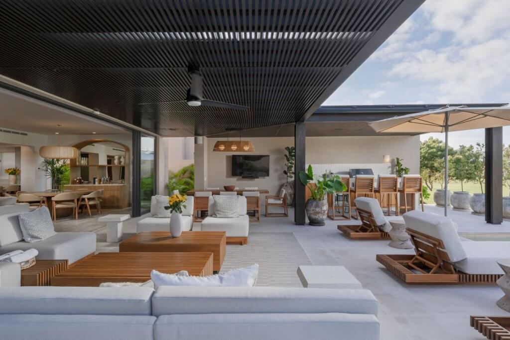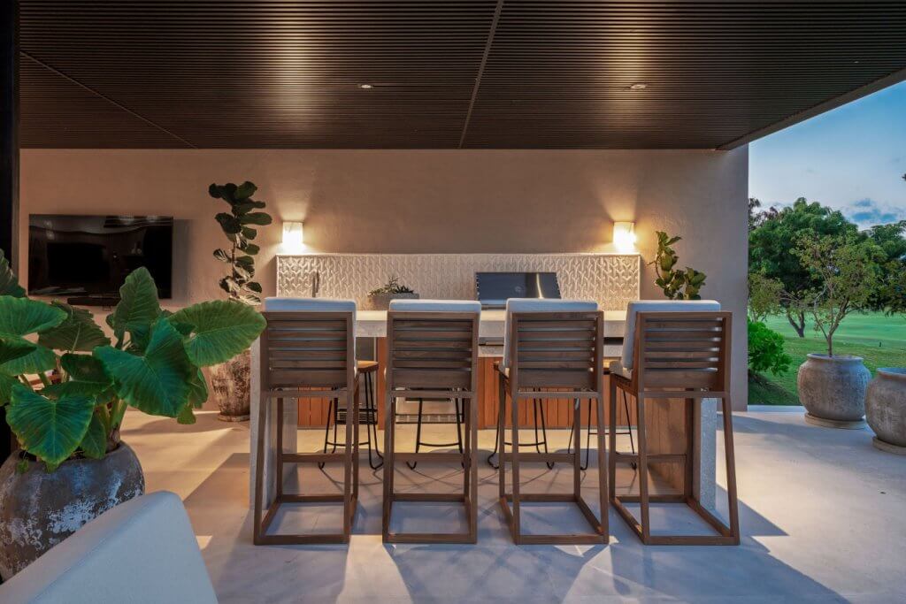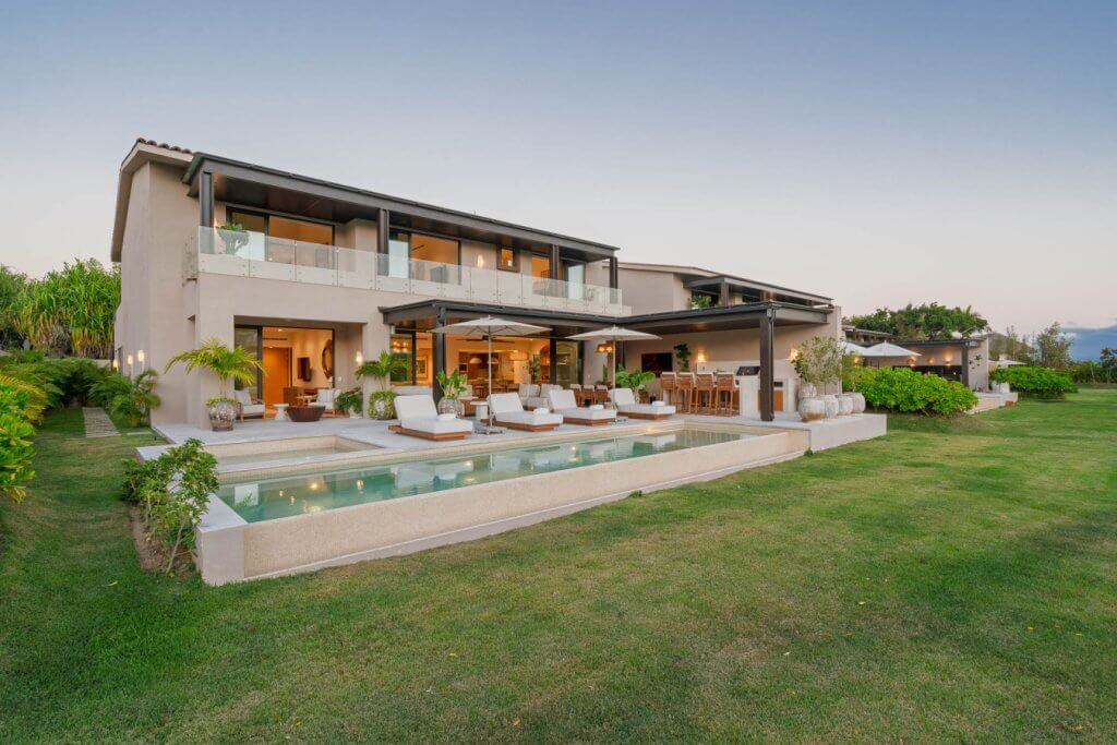 Villa Buena Vida is a luxury golf-view residence in the exclusive Porta Fortuna Golf Villas within Punta Mita. This private villa features 4 bedrooms—three with king beds and a bunk room with two queens and two twins—plus staff quarters. Enjoy a private pool and jacuzzi, outdoor dining with BBQ, and a spacious terrace overlooking the golf course. Includes a fully equipped kitchen, open living areas, and golf cart for easy access to beaches, marina, and restaurants.