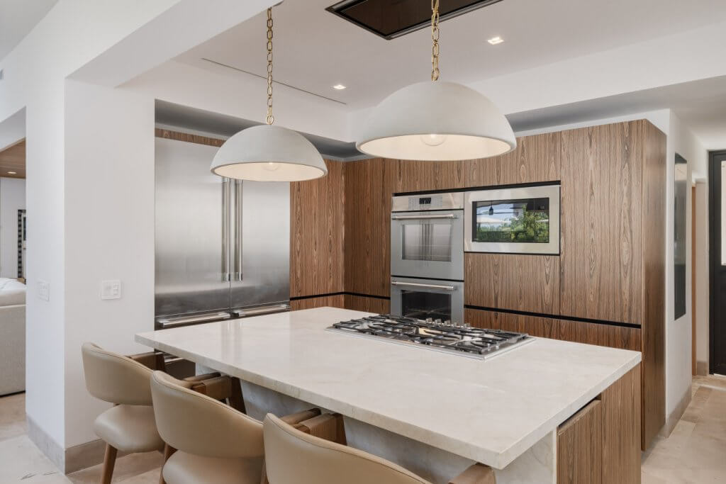 Baking sheet, Barbeque utensils, Blender, Coffee/tea maker, Dining area, Dining room, Dining table, Dishwasher, Ice maker, Kitchen, Kitchen island, Kitchen utensils, Microwave, Outdoor kitchen, Oven, Refrigerator, Spices, Stove, Toaster, Wine glasses
