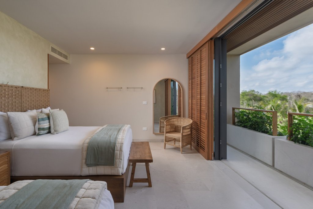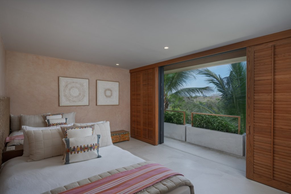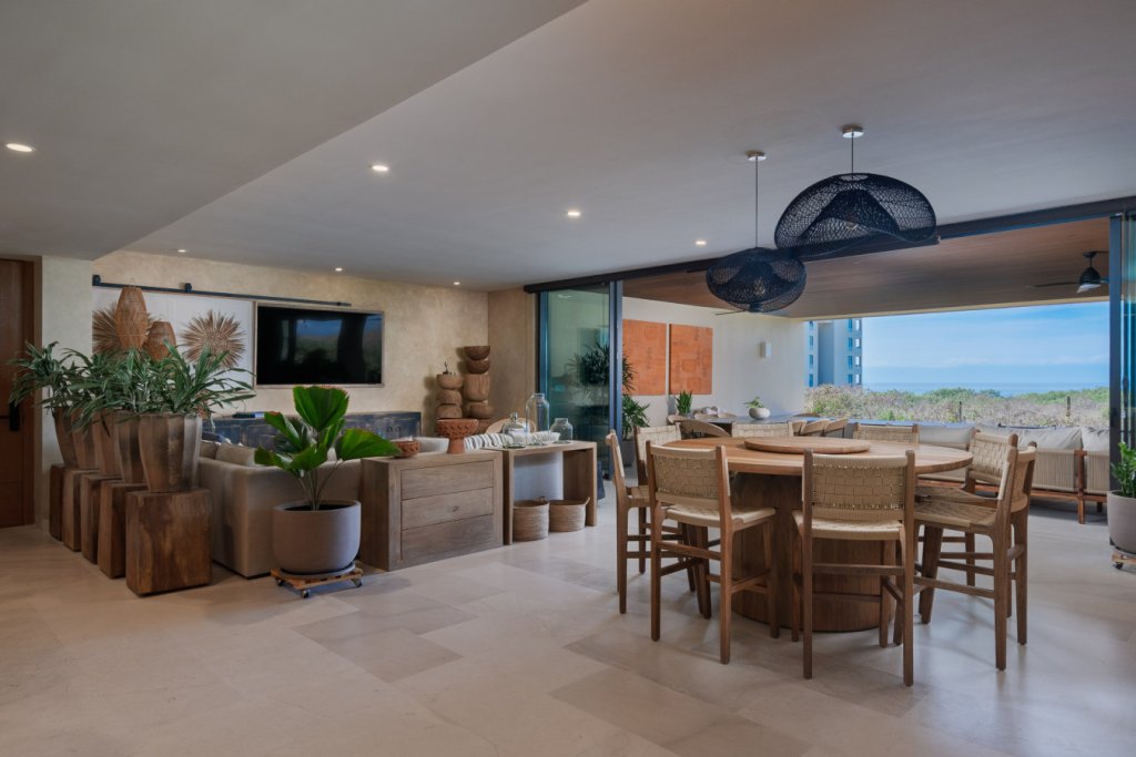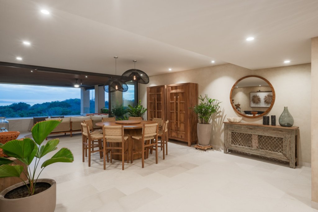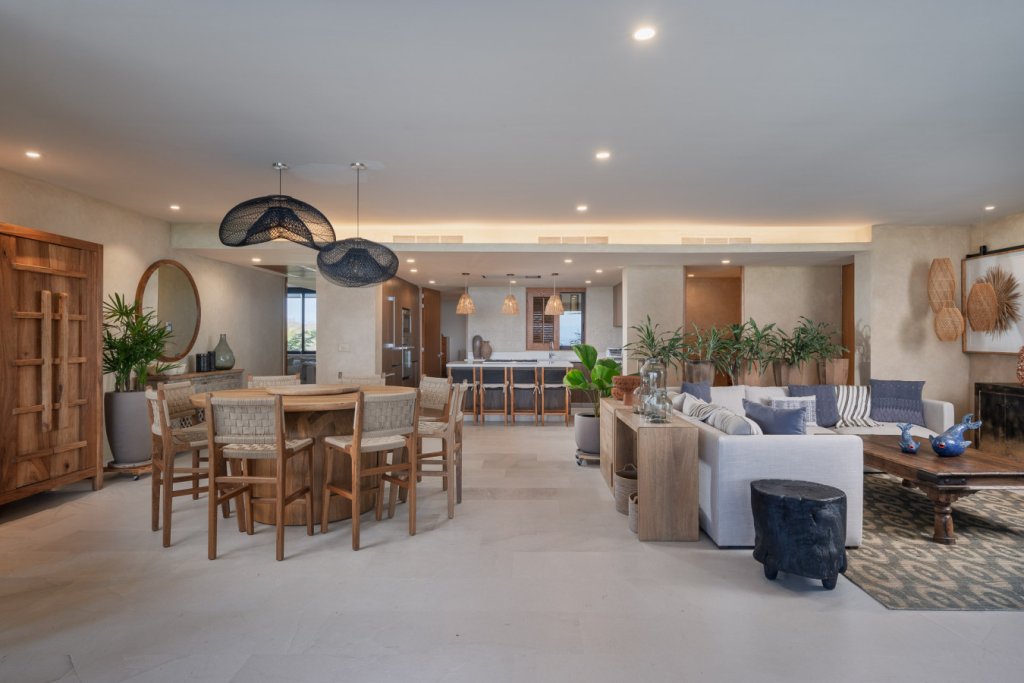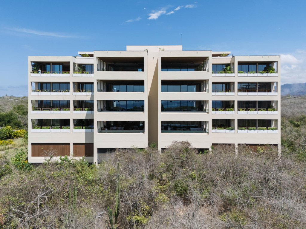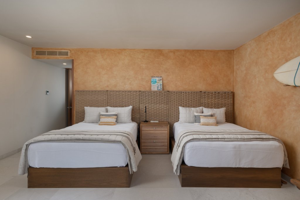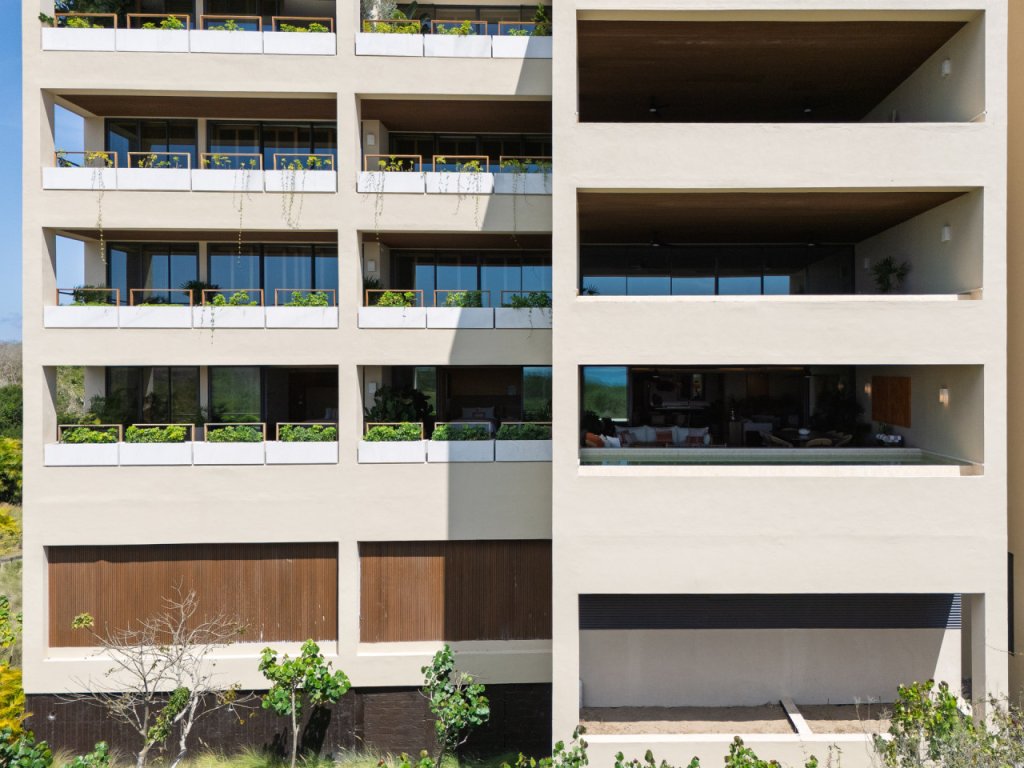 Spacious luxury residence in Surf Residences, Punta Mita, just 120 meters from the beach with ocean and mangrove views. This elegant condo features 4 bedrooms plus staff room, including a master suite with King bed, soaking tub, and double shower. Enjoy a private pool, large terrace with lounge seating, TV room, and fully equipped kitchen. Designed in a modern wabi-sabi style with warm tropical touches, perfect for families and groups seeking comfort and privacy.