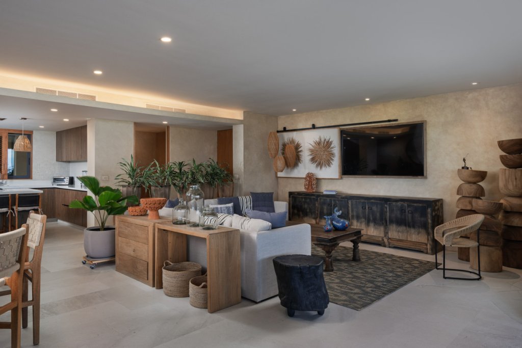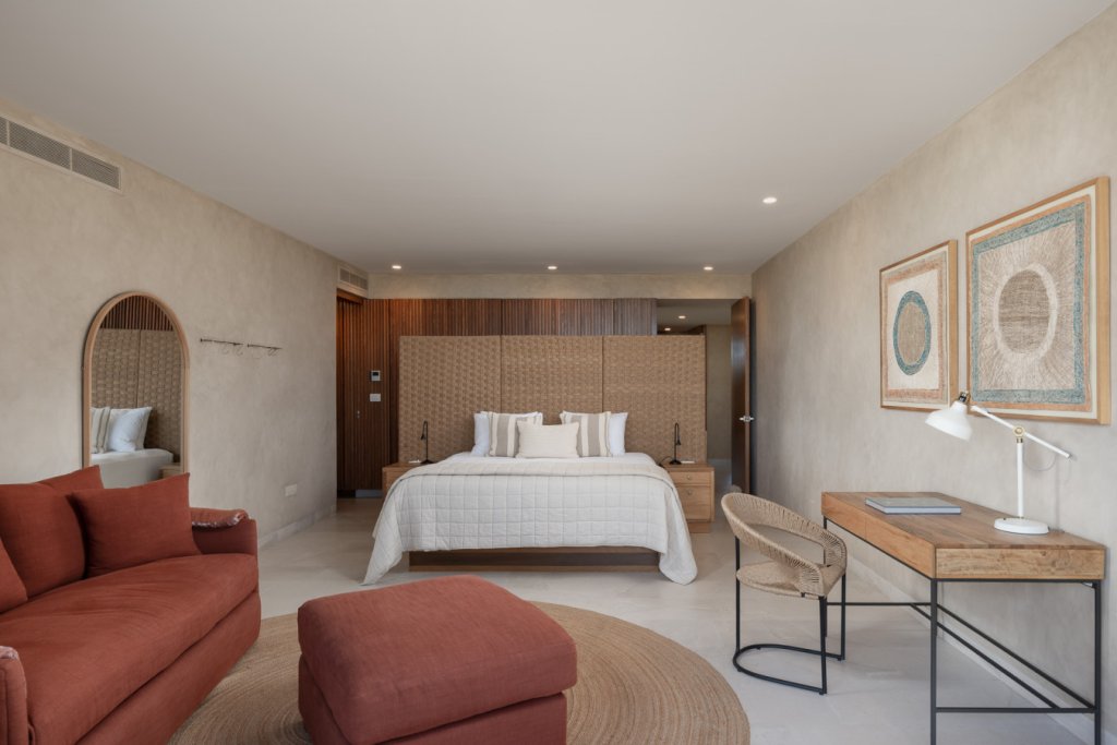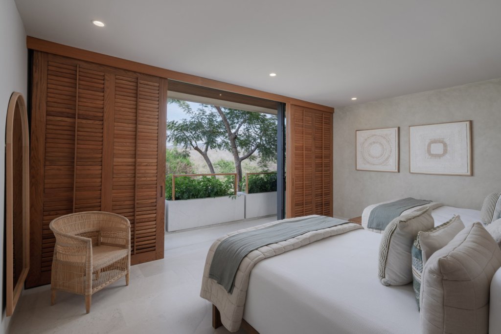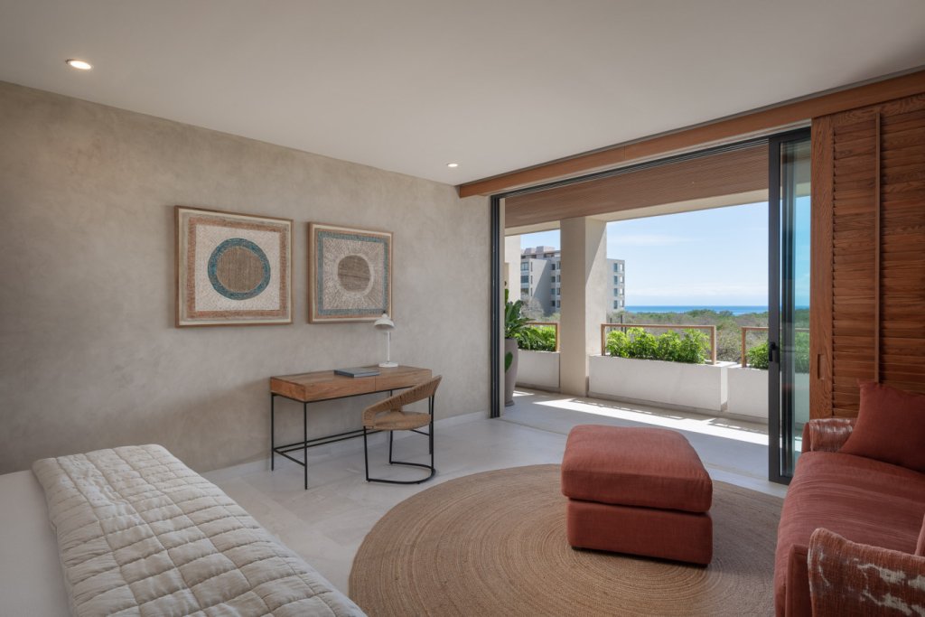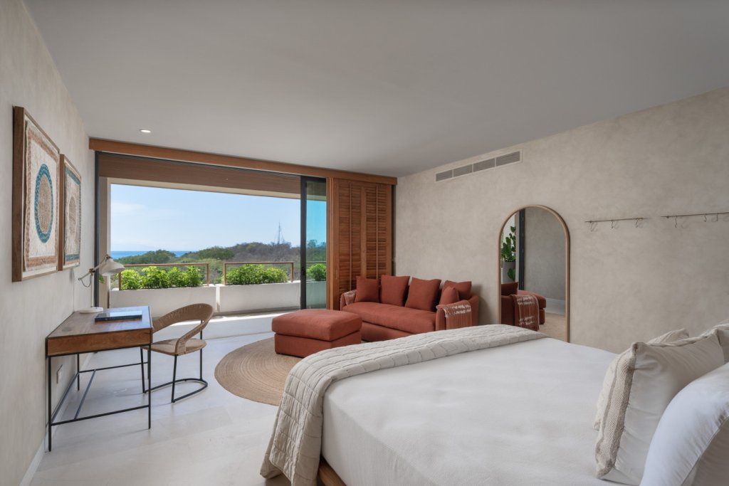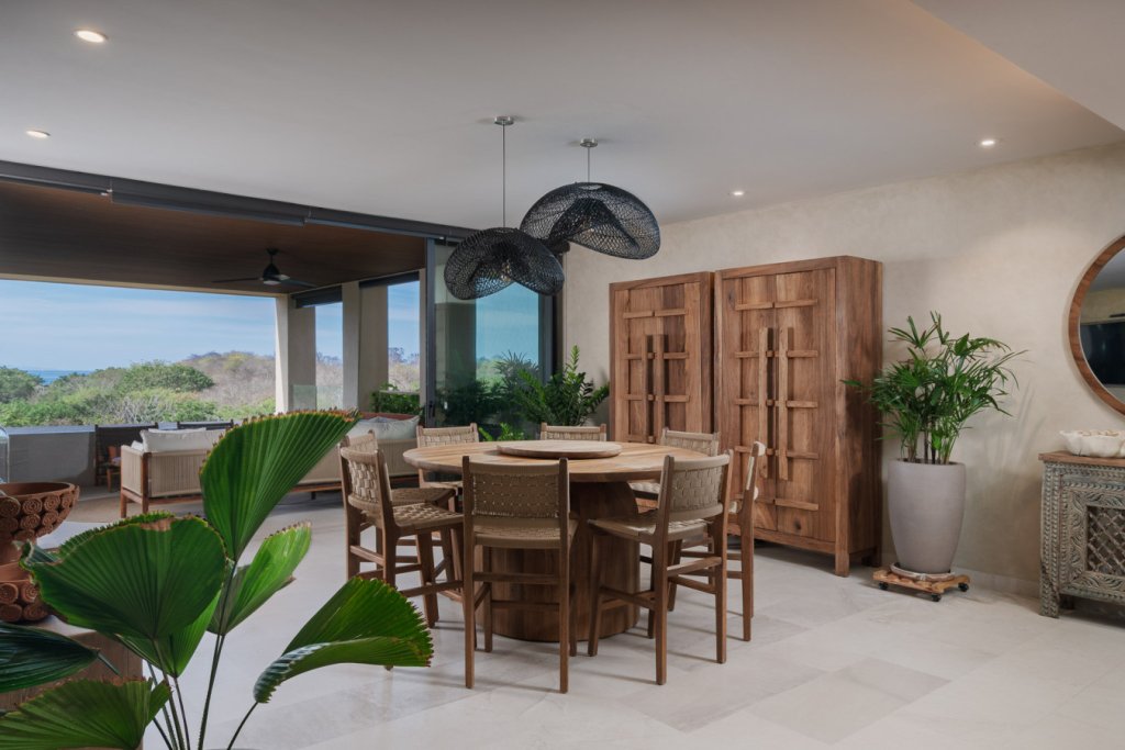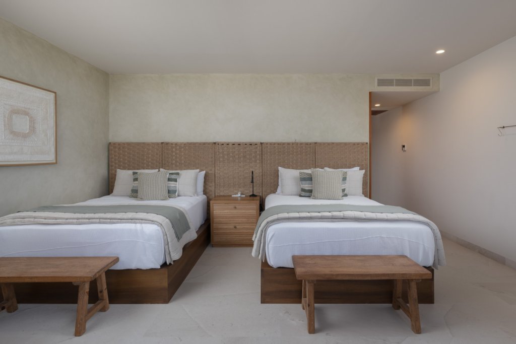 Spacious luxury residence in Surf Residences, Punta Mita, just 120 meters from the beach with ocean and mangrove views. This elegant condo features 4 bedrooms plus staff room, including a master suite with King bed, soaking tub, and double shower. Enjoy a private pool, large terrace with lounge seating, TV room, and fully equipped kitchen. Designed in a modern wabi-sabi style with warm tropical touches, perfect for families and groups seeking comfort and privacy.