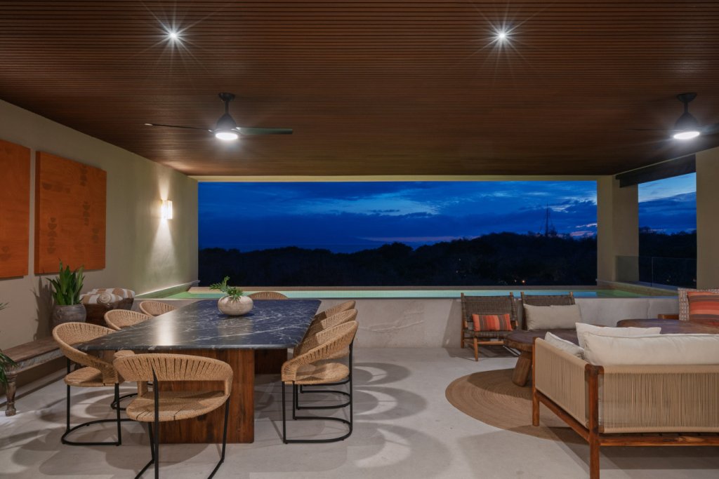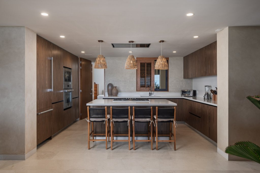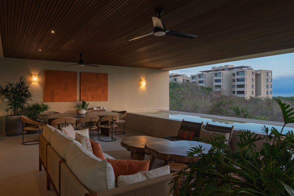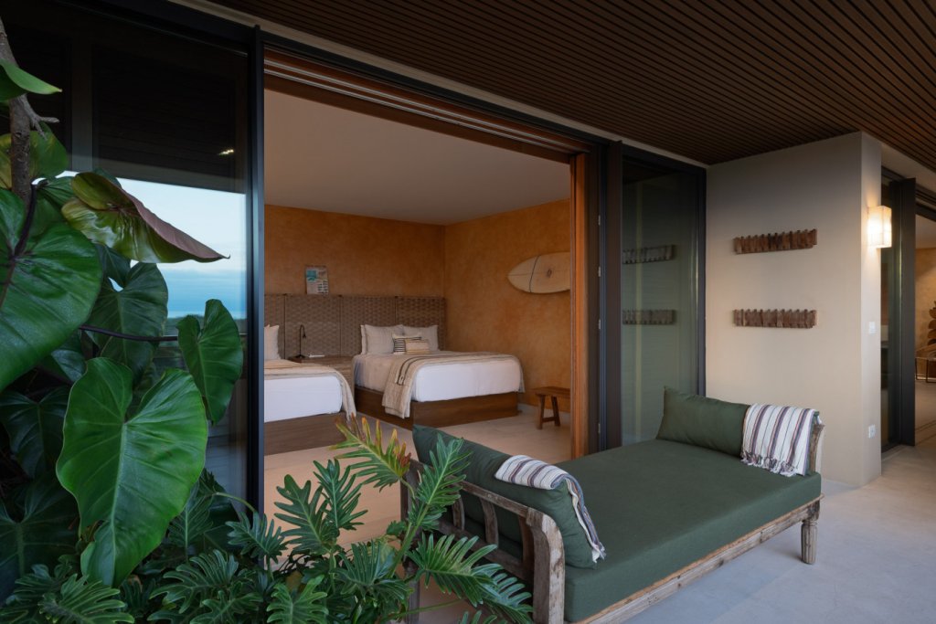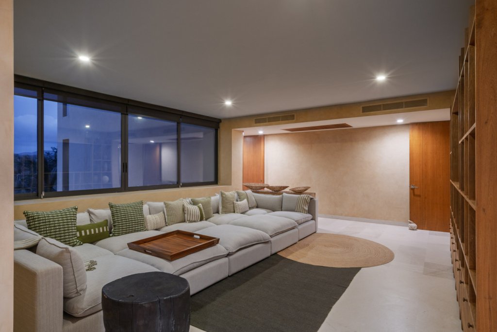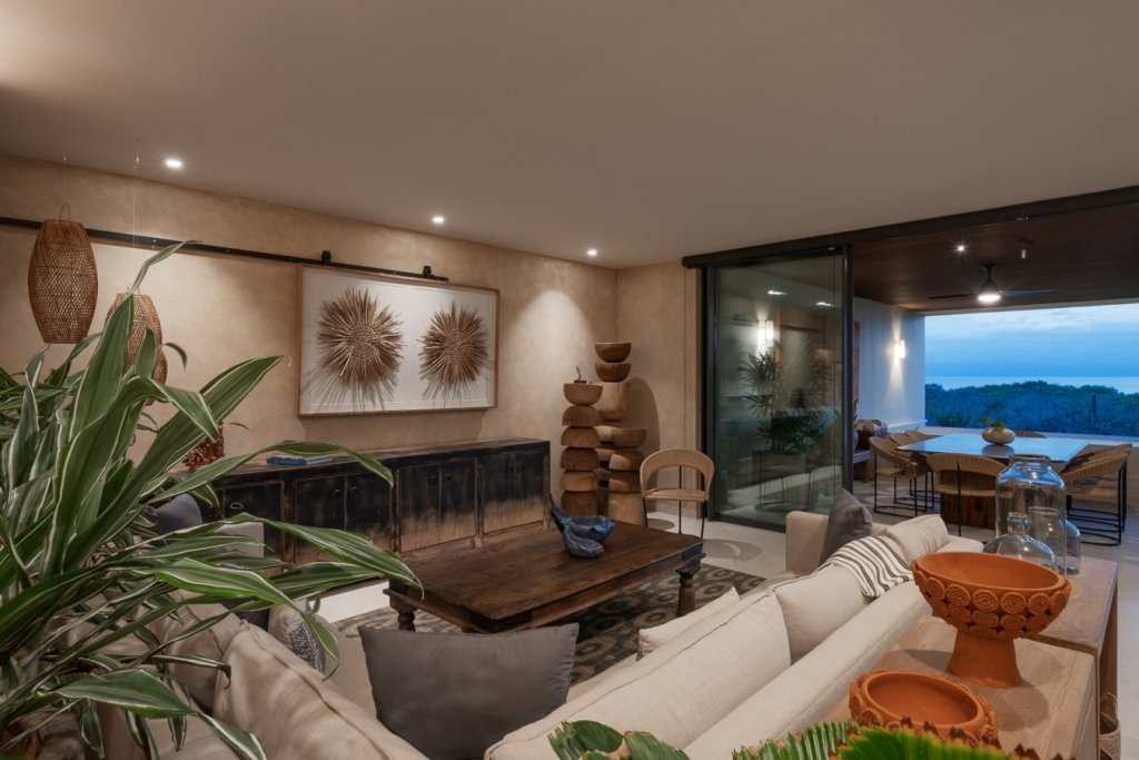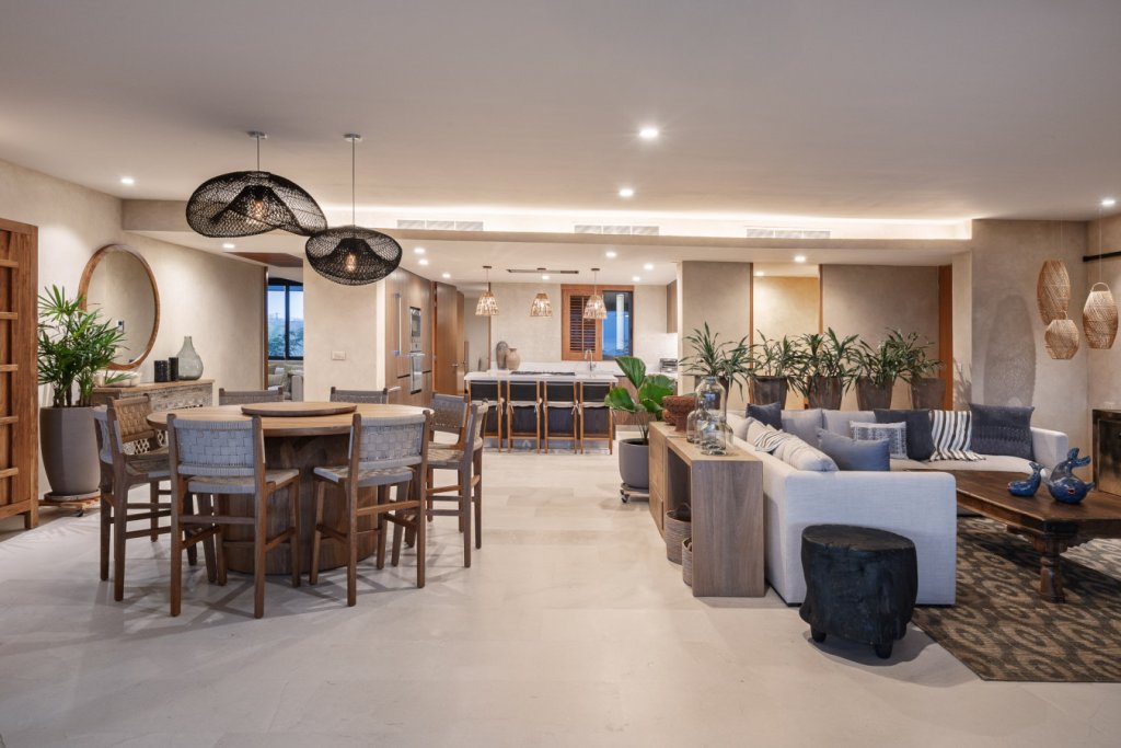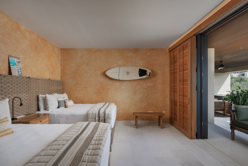 Spacious luxury residence in Surf Residences, Punta Mita, just 120 meters from the beach with ocean and mangrove views. This elegant condo features 4 bedrooms plus staff room, including a master suite with King bed, soaking tub, and double shower. Enjoy a private pool, large terrace with lounge seating, TV room, and fully equipped kitchen. Designed in a modern wabi-sabi style with warm tropical touches, perfect for families and groups seeking comfort and privacy.
