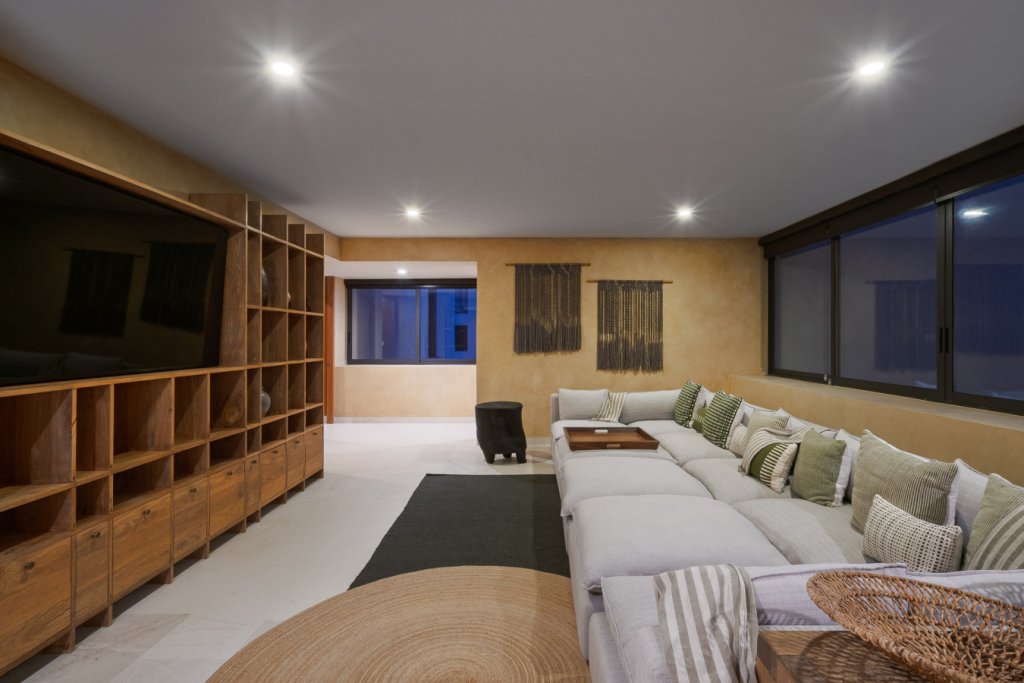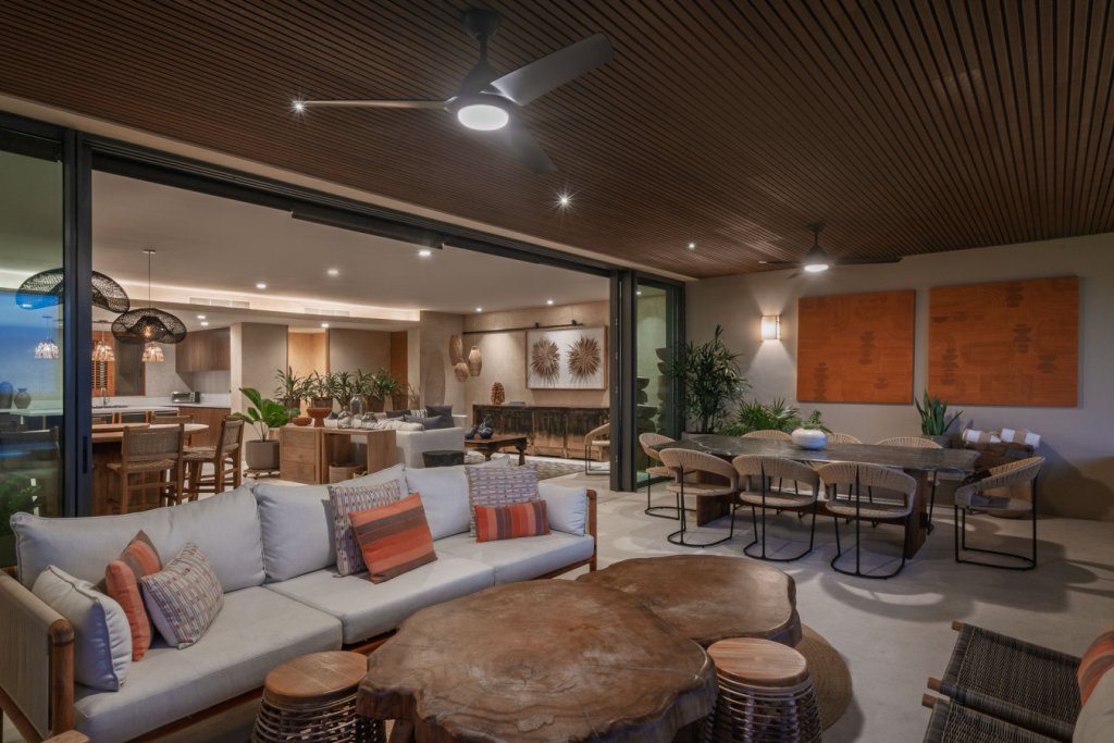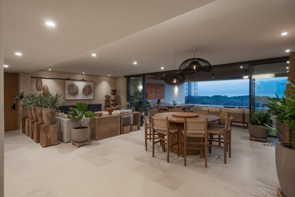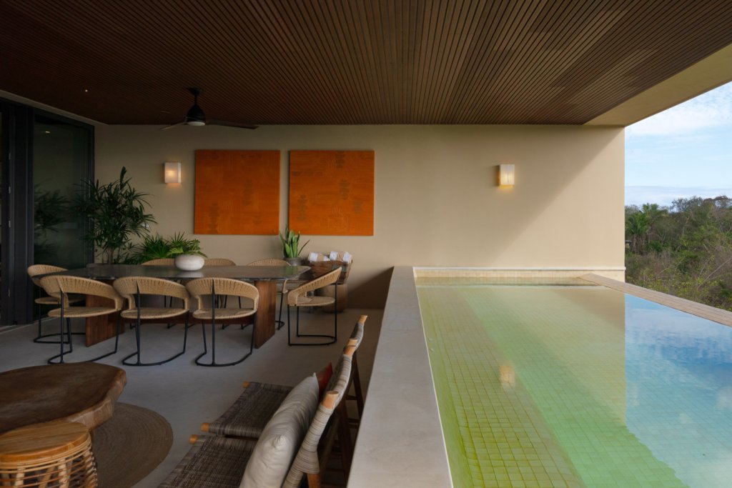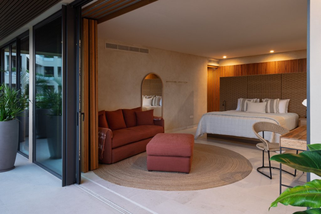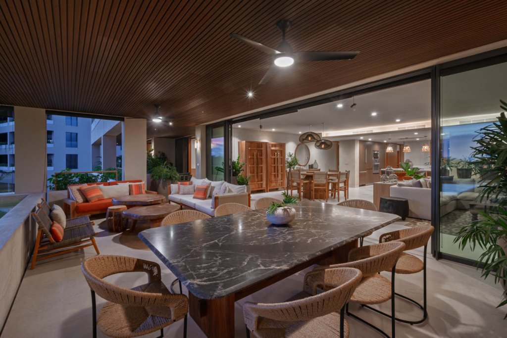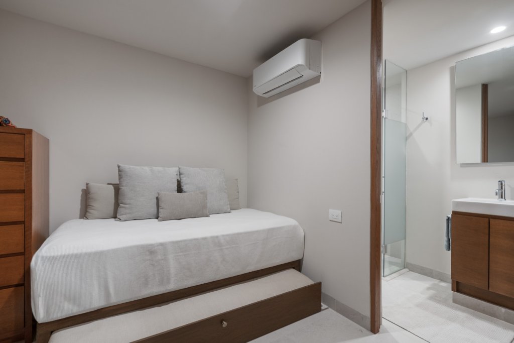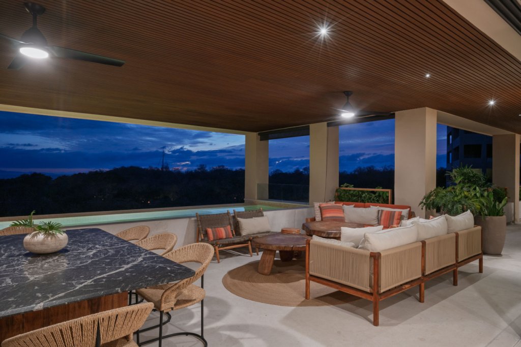 Spacious luxury residence in Surf Residences, Punta Mita, just 120 meters from the beach with ocean and mangrove views. This elegant condo features 4 bedrooms plus staff room, including a master suite with King bed, soaking tub, and double shower. Enjoy a private pool, large terrace with lounge seating, TV room, and fully equipped kitchen. Designed in a modern wabi-sabi style with warm tropical touches, perfect for families and groups seeking comfort and privacy.