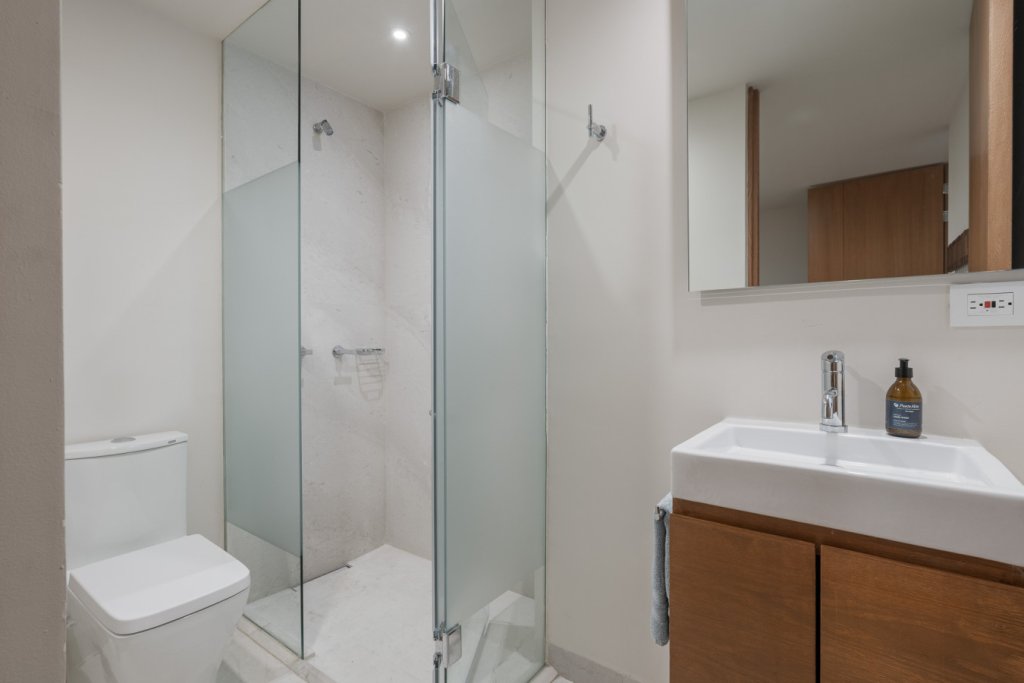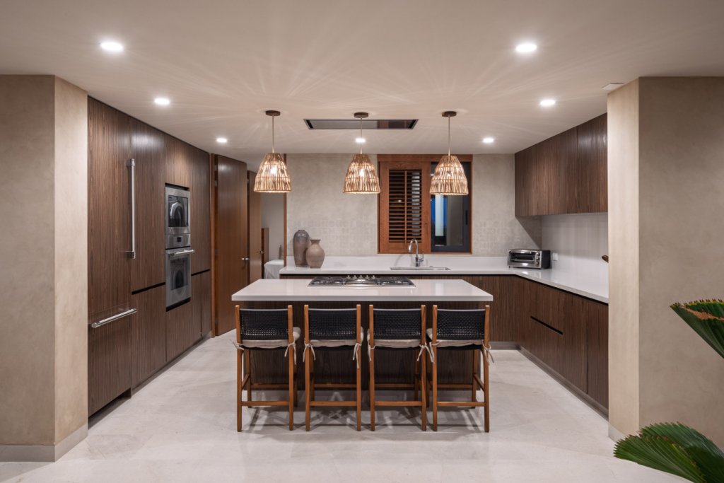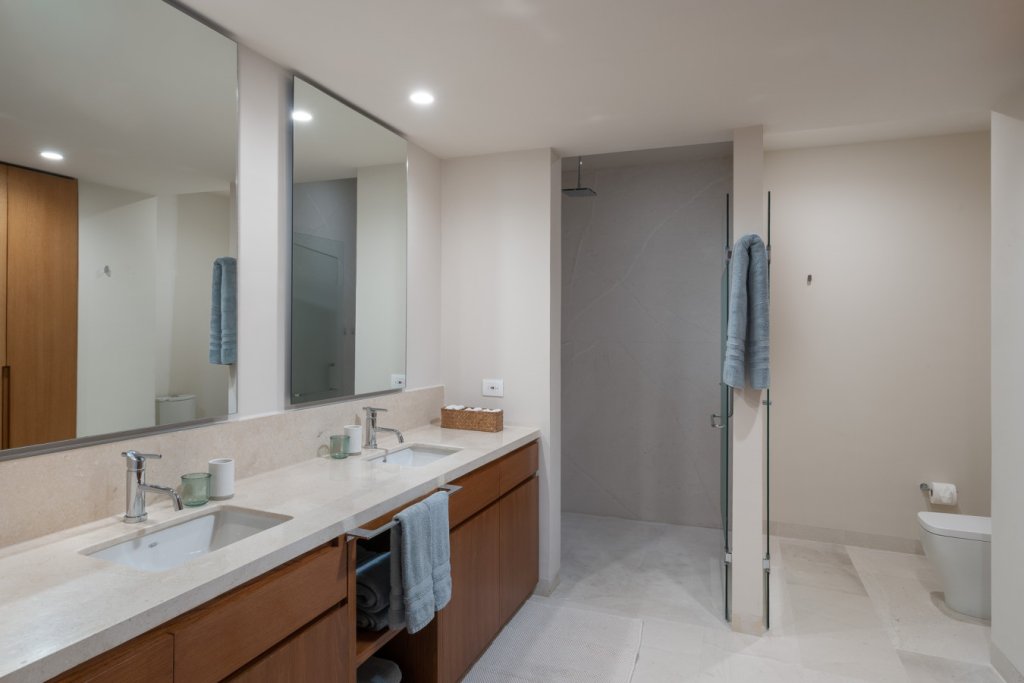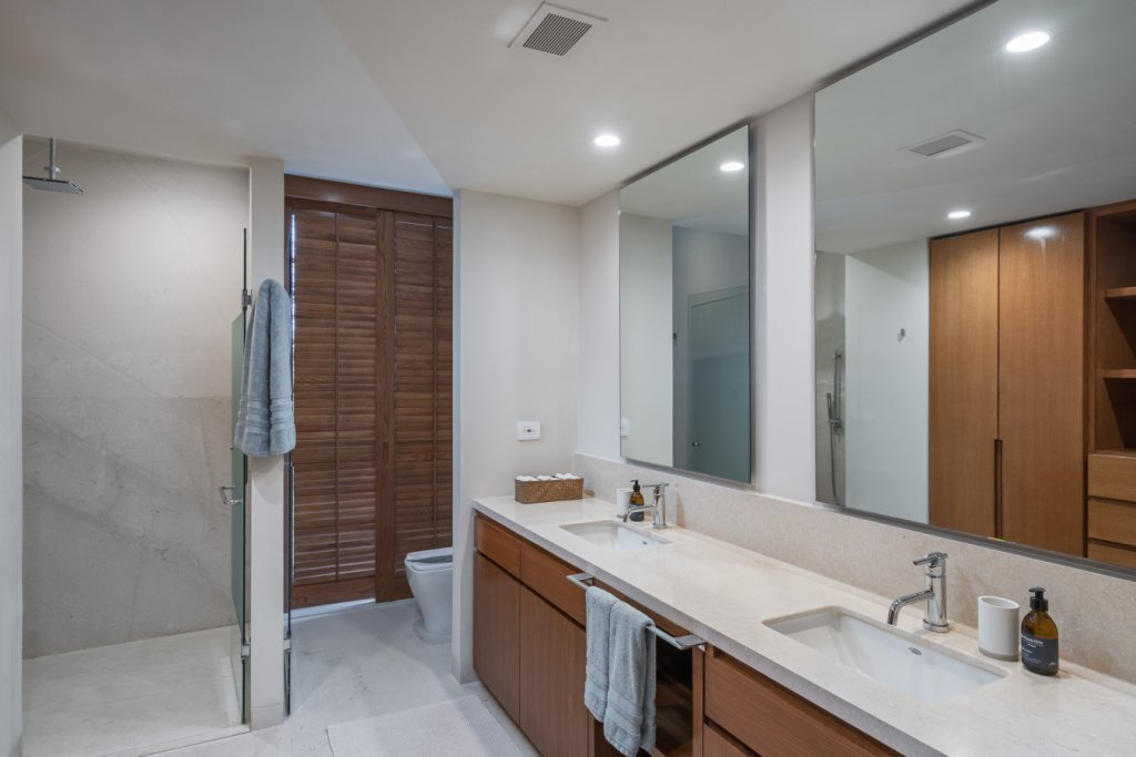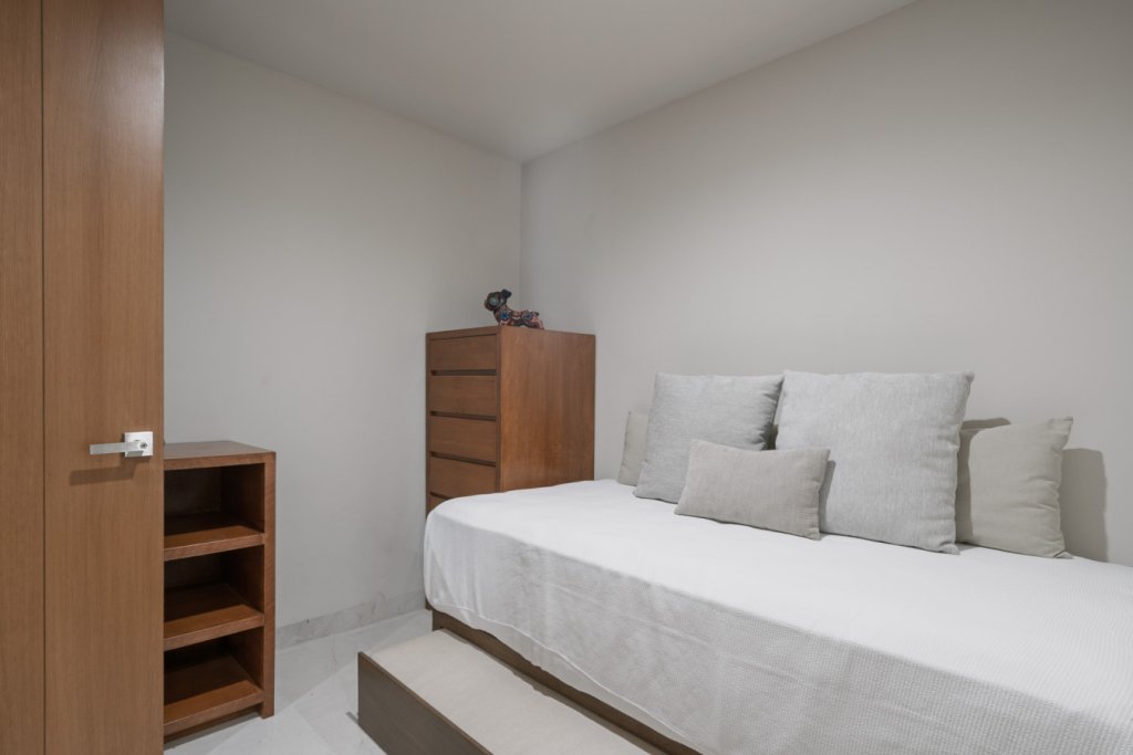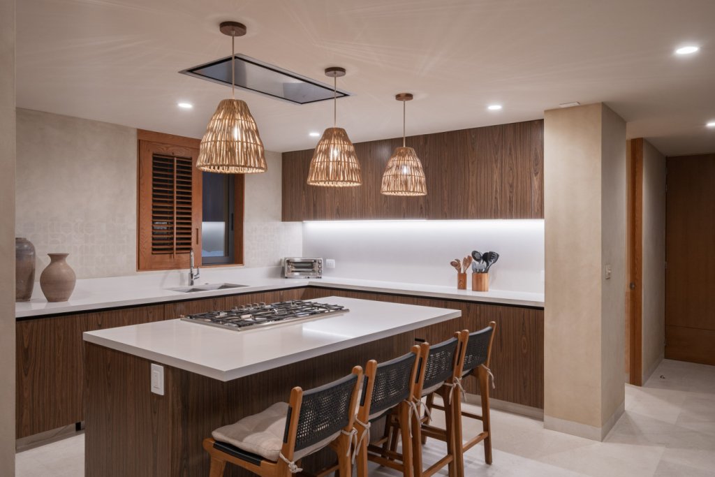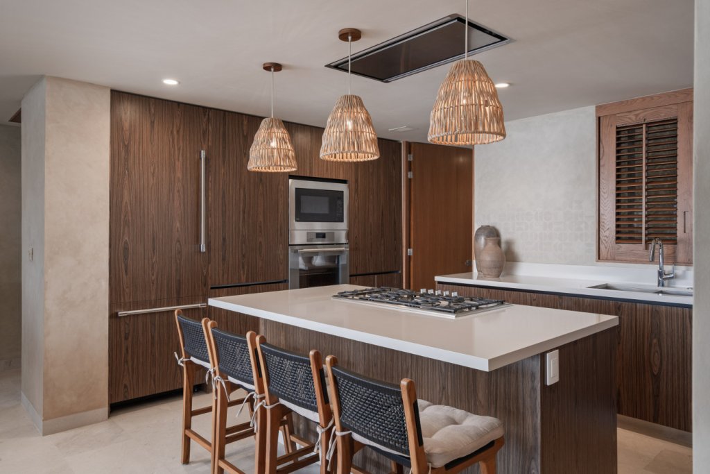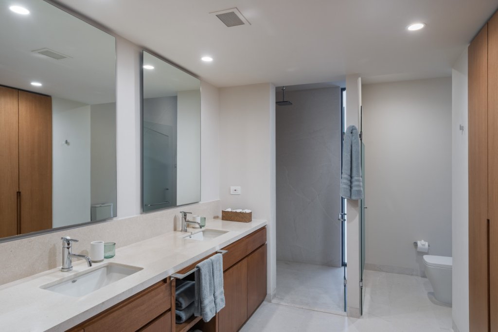 Spacious luxury residence in Surf Residences, Punta Mita, just 120 meters from the beach with ocean and mangrove views. This elegant condo features 4 bedrooms plus staff room, including a master suite with King bed, soaking tub, and double shower. Enjoy a private pool, large terrace with lounge seating, TV room, and fully equipped kitchen. Designed in a modern wabi-sabi style with warm tropical touches, perfect for families and groups seeking comfort and privacy.
