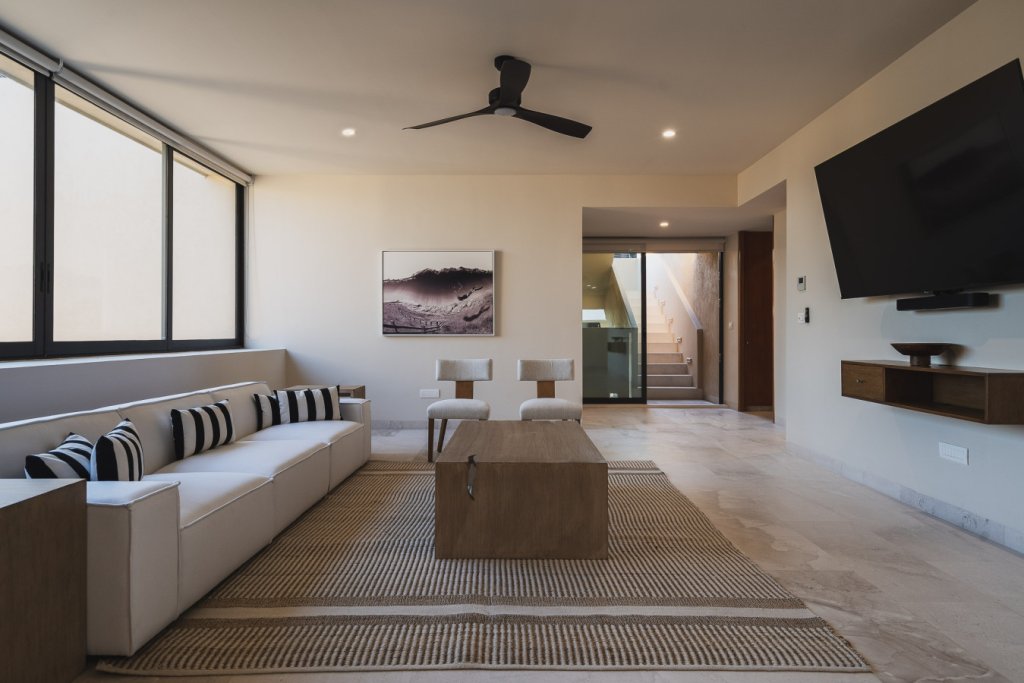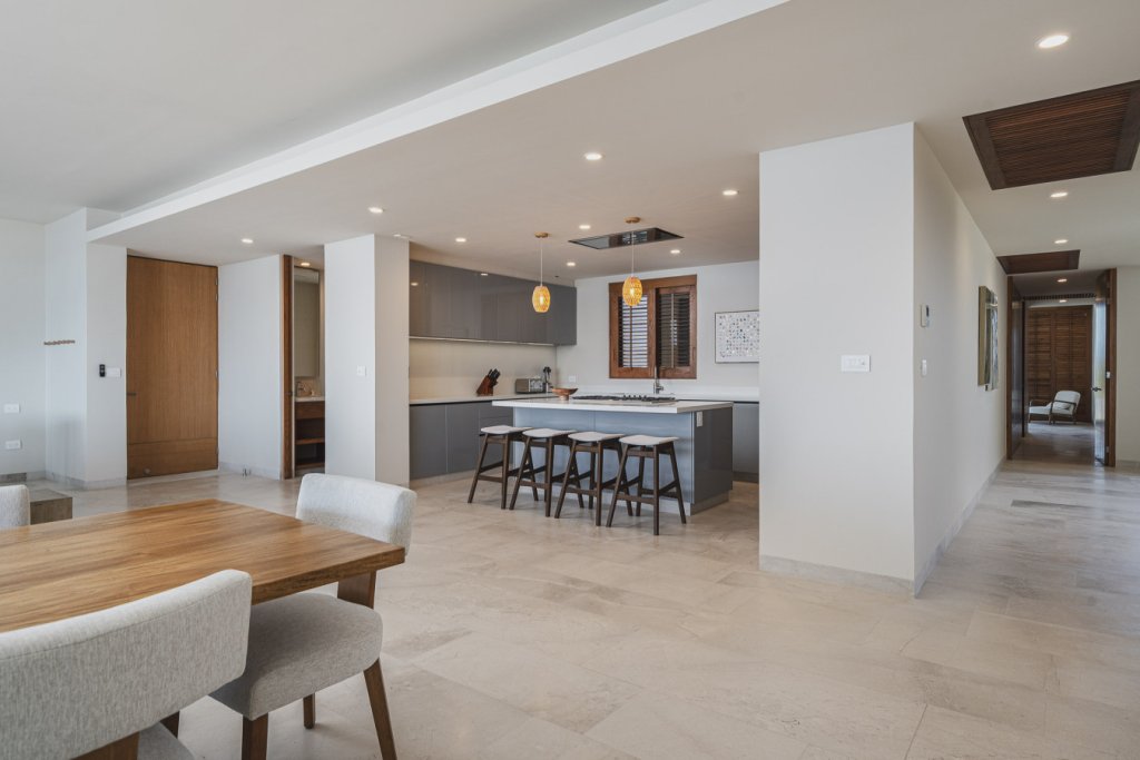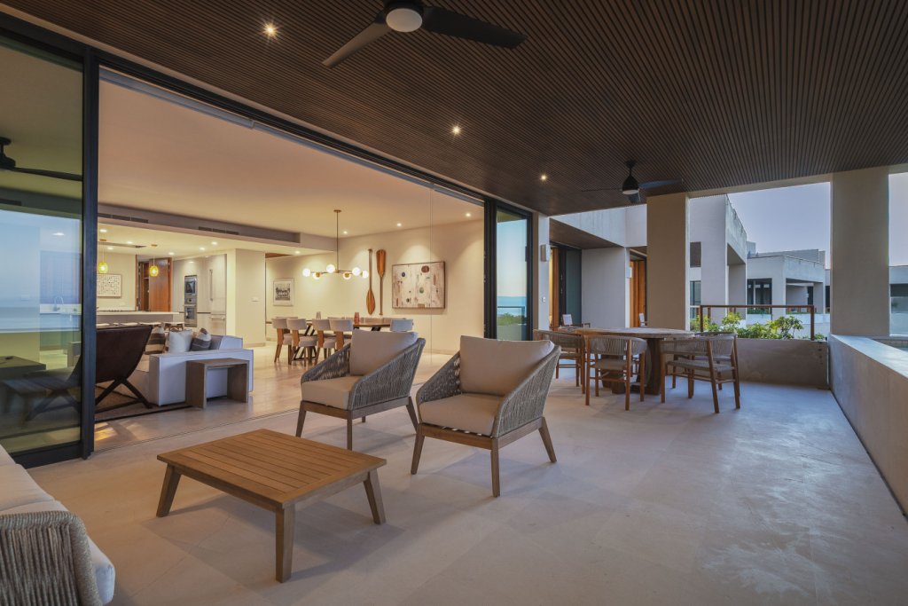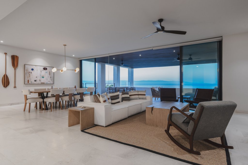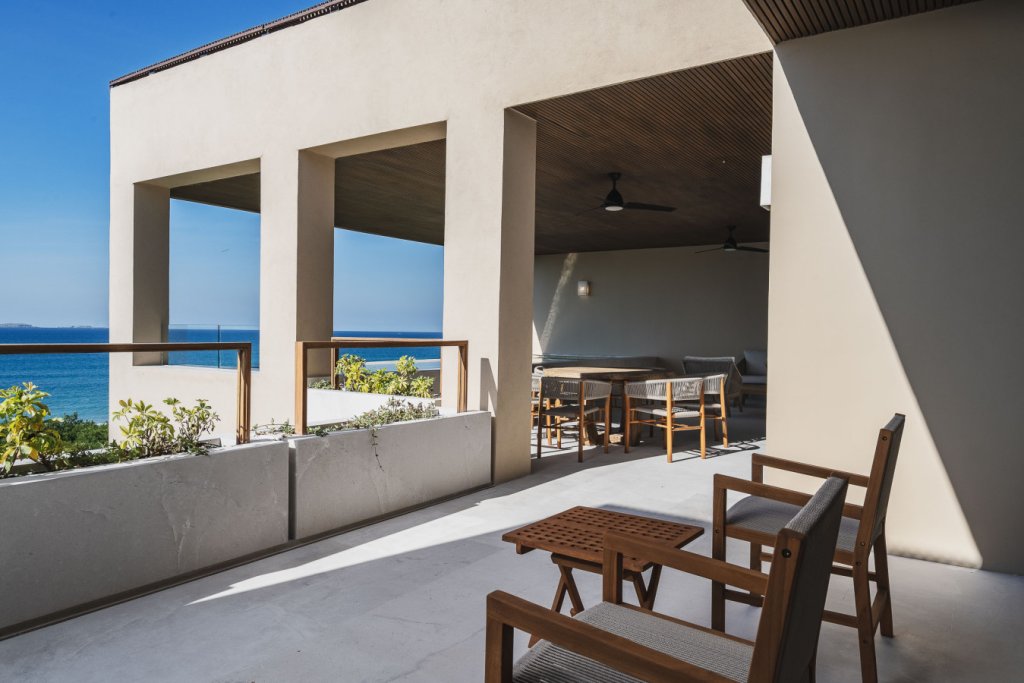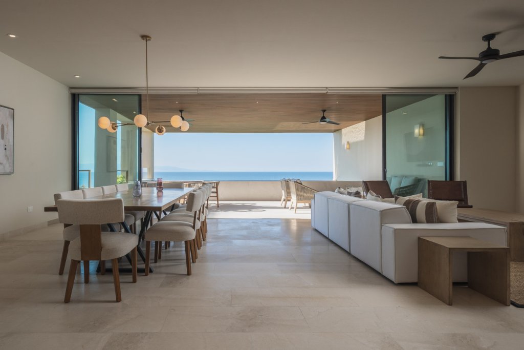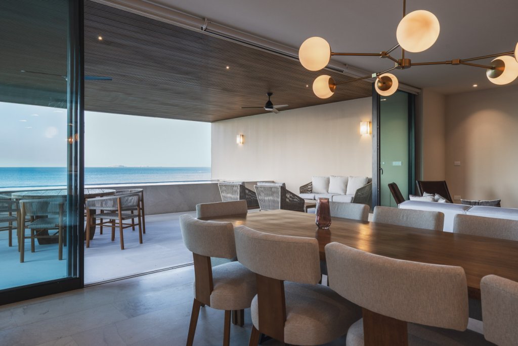 Oceanfront two-level penthouse with 7,600+ sq. ft. of bright, contemporary coastal living. Features floor-to-ceiling windows, terraces with panoramic views, a private rooftop with plunge pool, lounge, and outdoor kitchen. Inside, enjoy a gourmet kitchen, spacious social areas, spa-style bathrooms, and a family/TV room—perfect for relaxing, entertaining, or working in style.