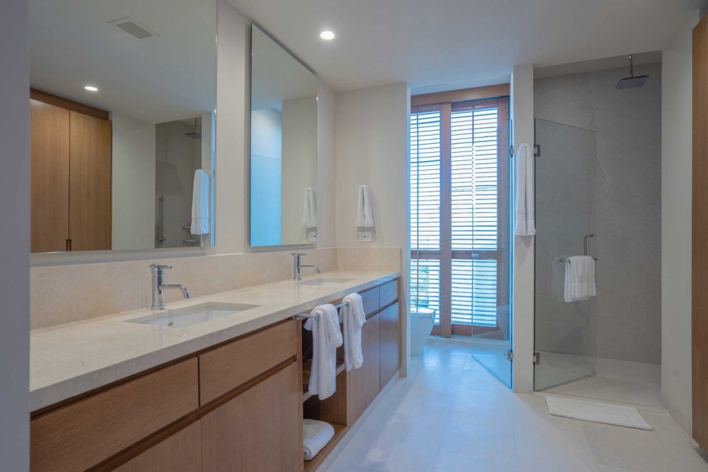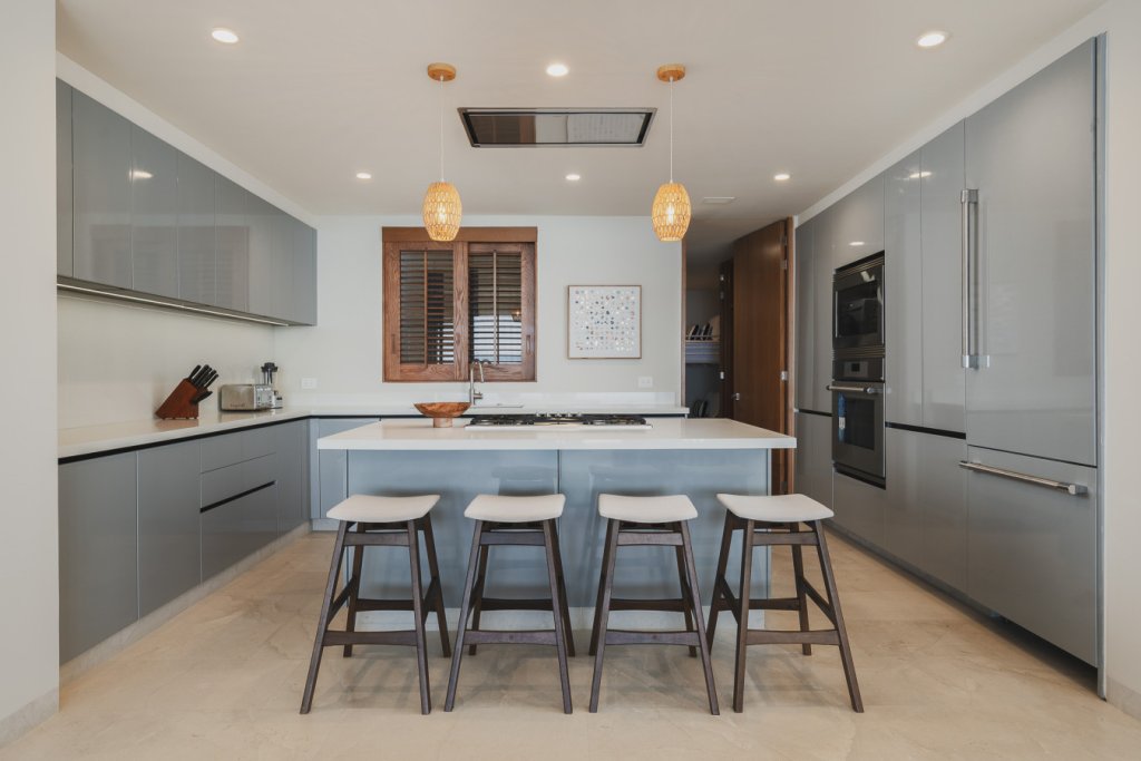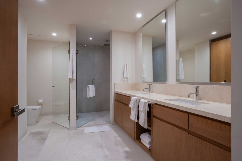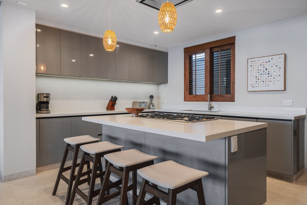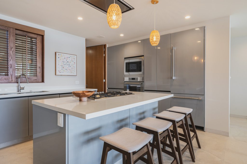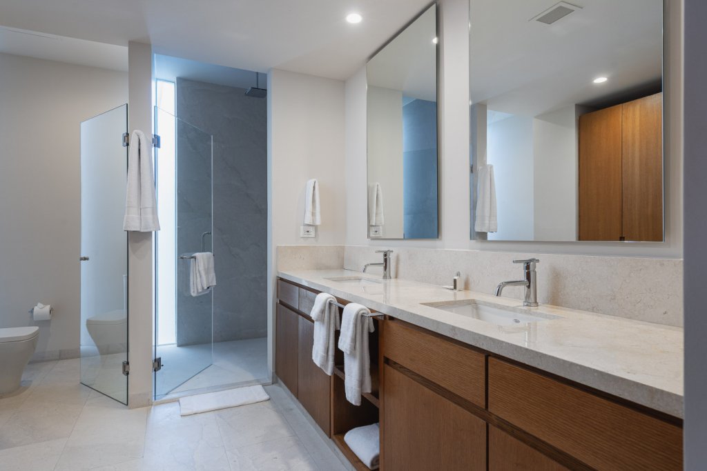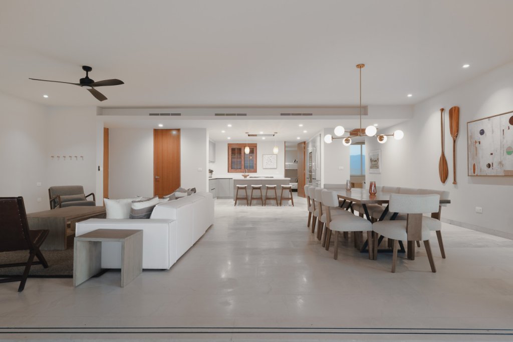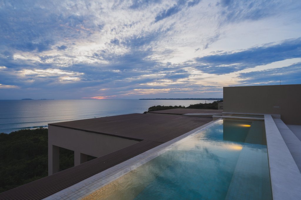Oceanfront two-level penthouse with 7,600+ sq. ft. of bright, contemporary coastal living. Features floor-to-ceiling windows, terraces with panoramic views, a private rooftop with plunge pool, lounge, and outdoor kitchen. Inside, enjoy a gourmet kitchen, spacious social areas, spa-style bathrooms, and a family/TV room—perfect for relaxing, entertaining, or working in style.